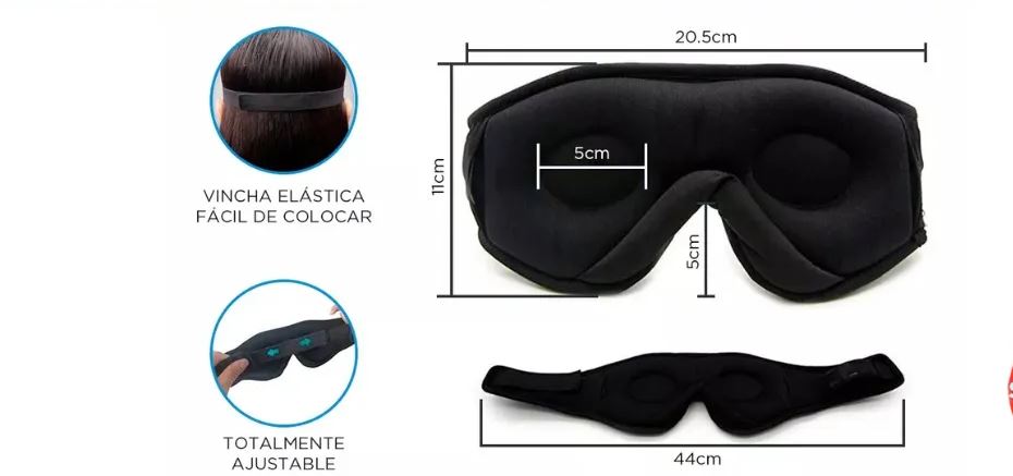 La Máscara Antifaz Para Dormir Con Bluetooth está diseñada con tecnología ergonómica para el área de los ojos bloqueando el 100% de la luz para crear una zona oscura y permite escuchar música sin necesidad de auriculares adicionales, lo que favorece un sueño reparador. Ideal para el hogar, oficina, viajes, relajación, meditación, etc.