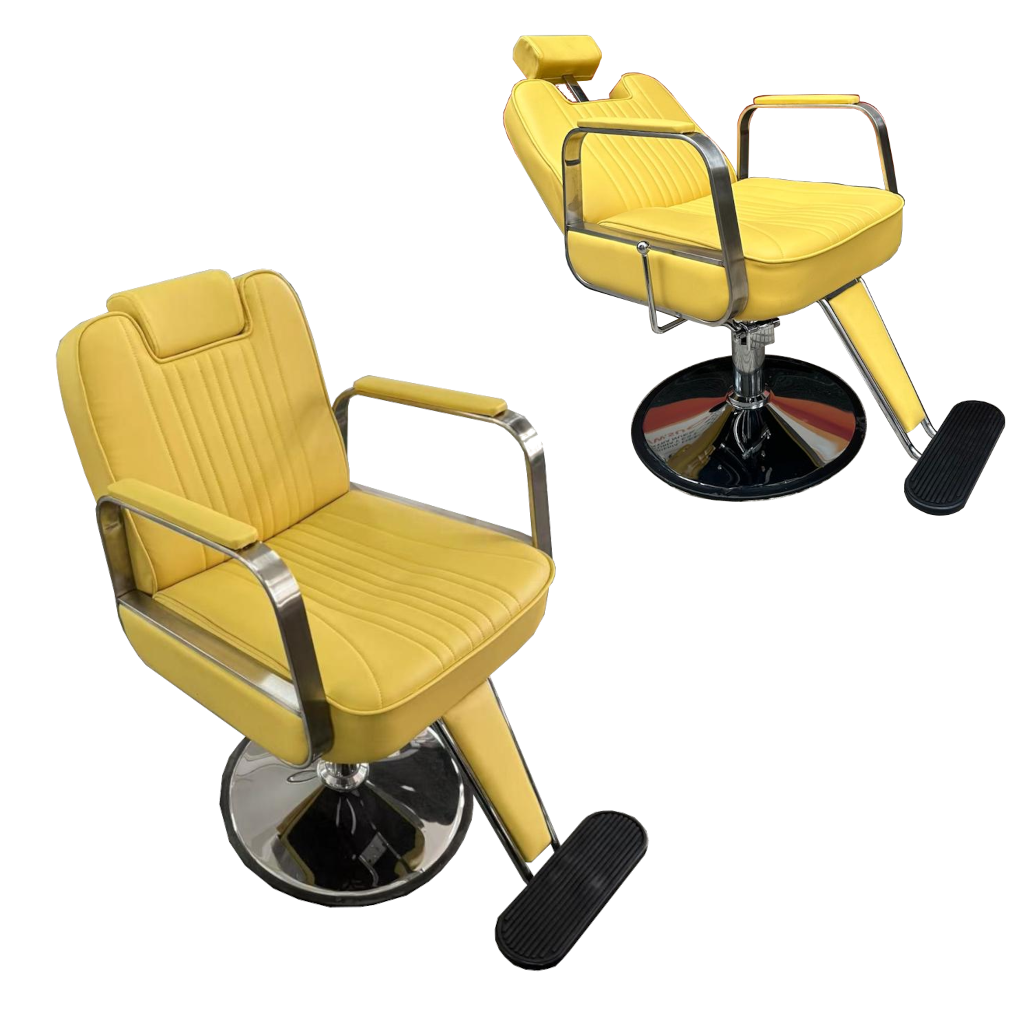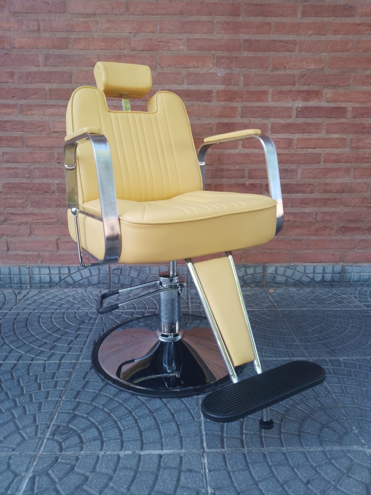 Se trata de un moderno y funcional Sillón hidráulico con respaldo reclinable, que dispone de una resistente bomba hidráulica para regulación de altura, así como una elegante base con un práctico reposapies metálico integrado. El sillón también dispone de reposacabezas extensible hasta 20 cm, además de un tapizado en polipiel de alta calidad en color negro con acolchado de gran confort y elegantes acabados. Algunas de las características generales más importantes del Sillón hidráulico, que lo hacen ideal para su uso en peluquería o barbería, son las siguientes: