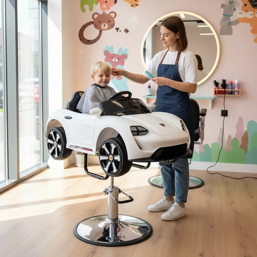 Inicio Muebles Sillones Peluquería Silla de Corte Niño Auto Porsche Blanco con Luces y Sonido
