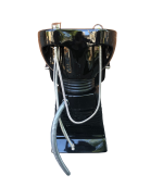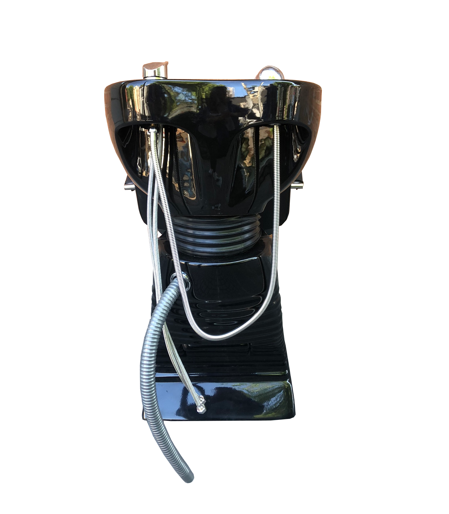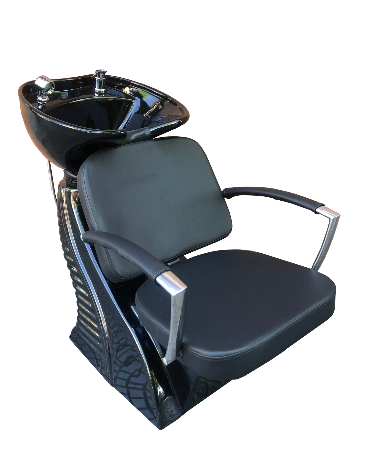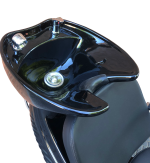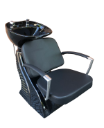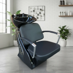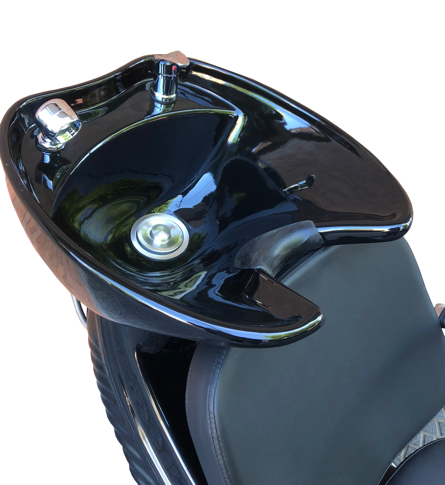 Con asiento tapizado en color negro y su bacha de cerámica reclinable permite ajustar la posición del cliente para maximizar la comodidad, mientras que el sistema mono comando facilita el control del agua con una sola mano.